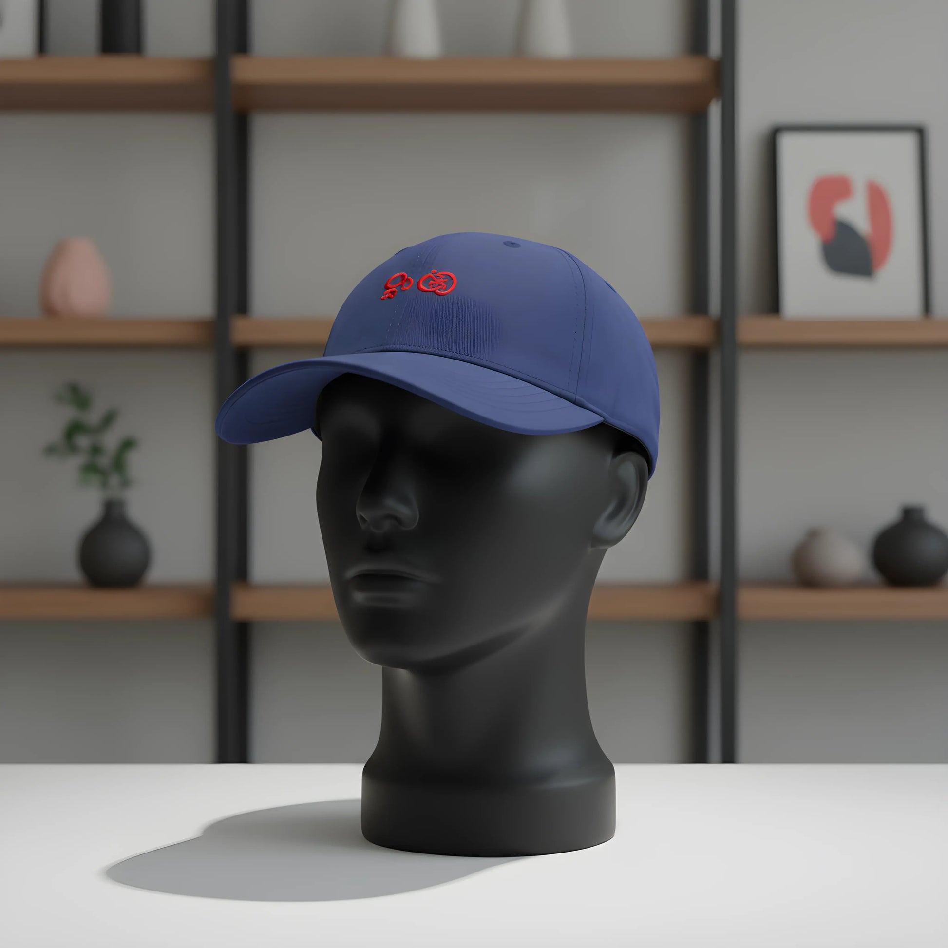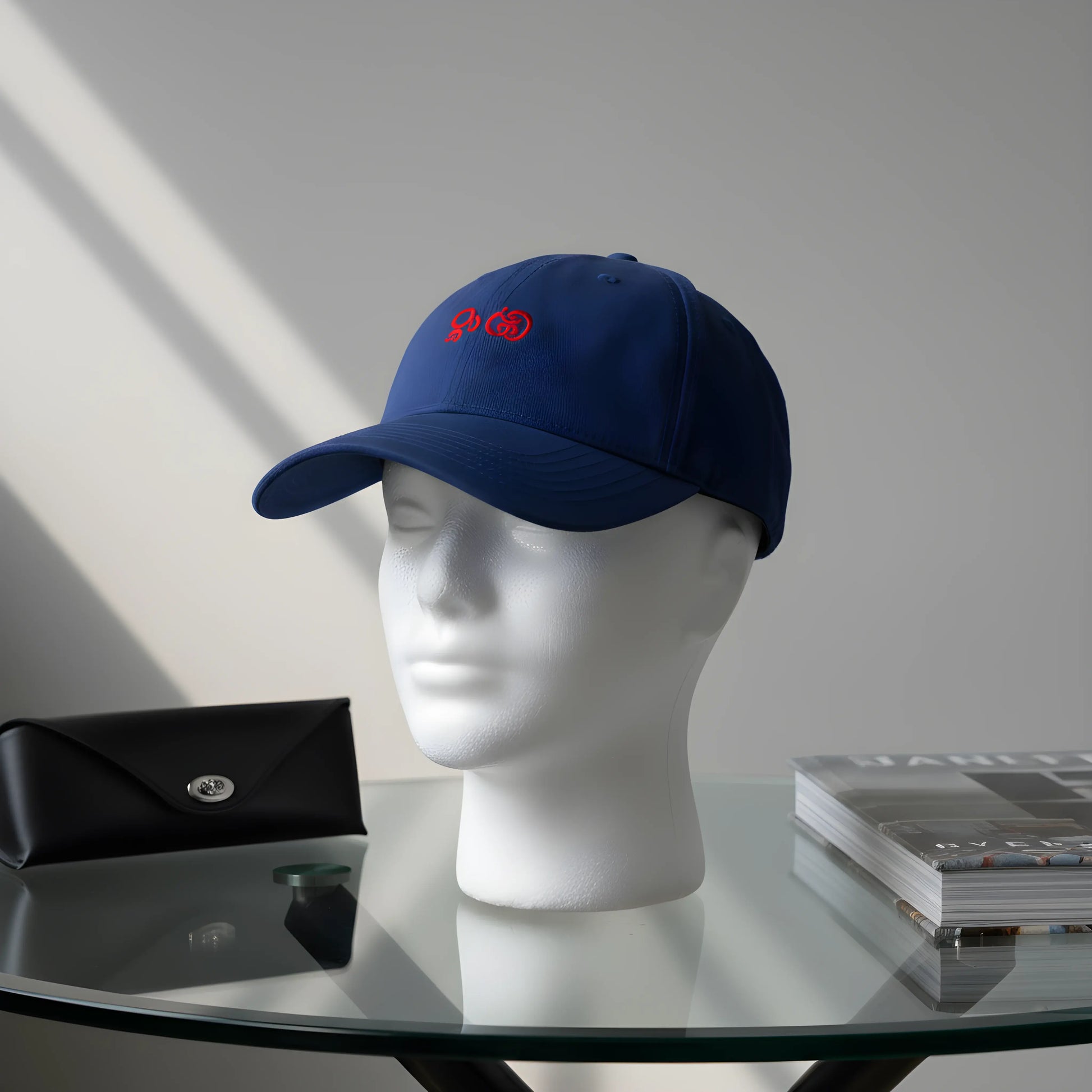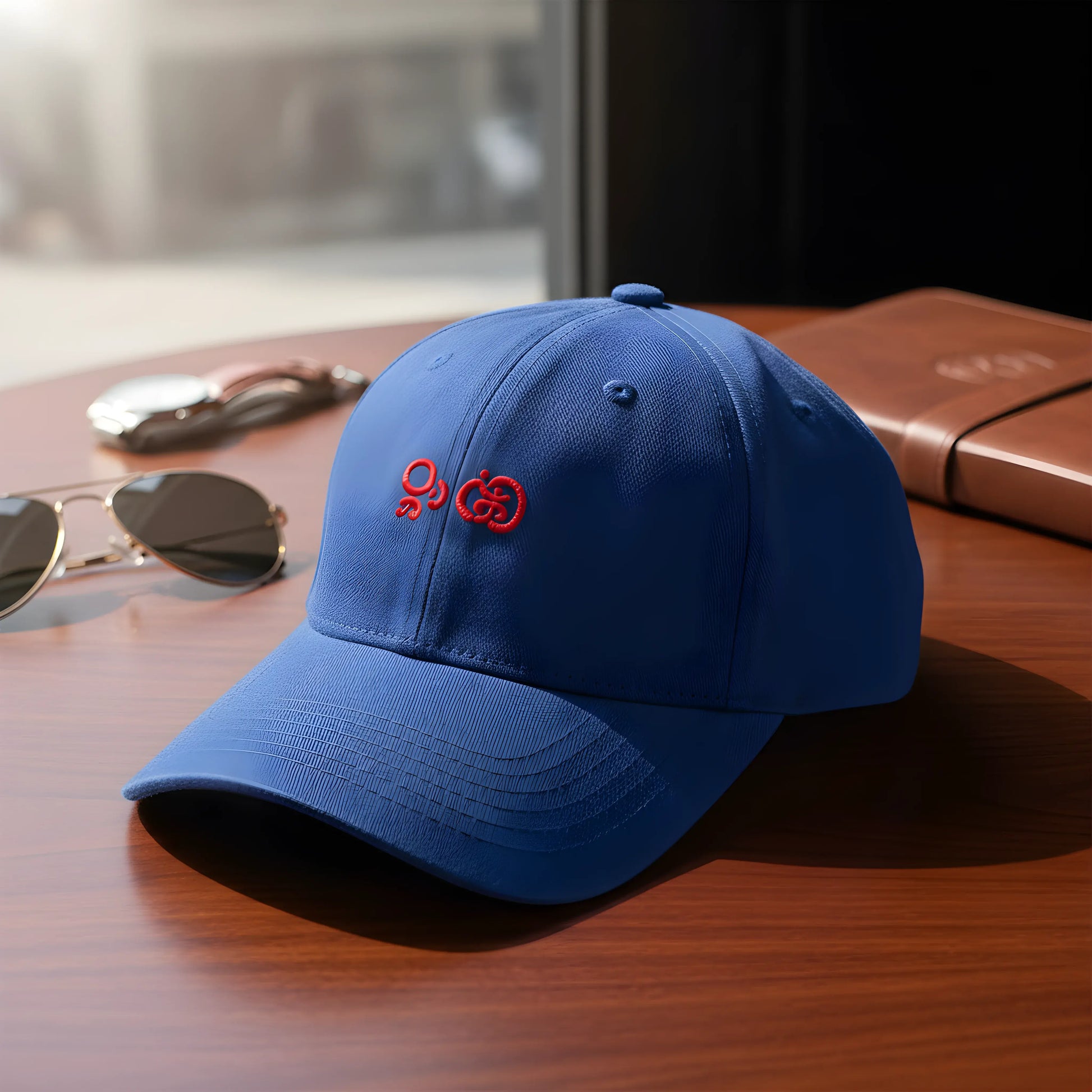 Blue Baseball Cap with Red Embroidery