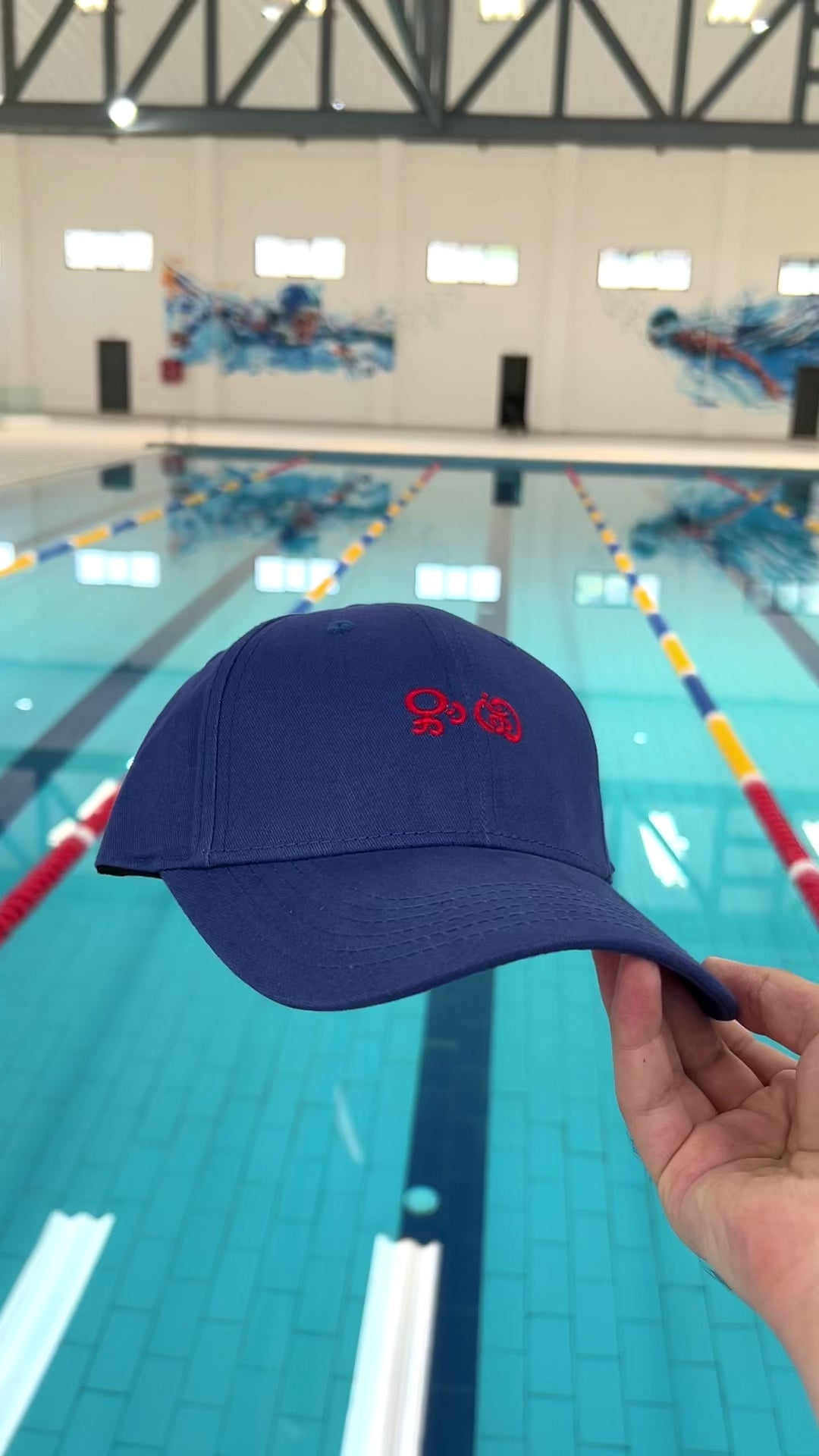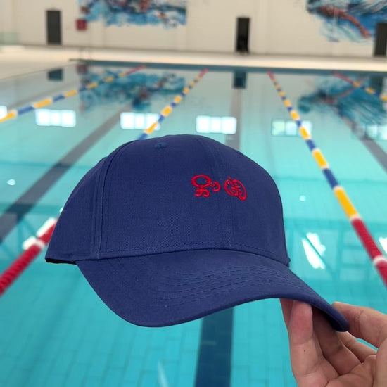 Vibrant blue baseball cap featuring two small red embroidered symbols on the front panel, adding a unique and eye-catching touch. Its classic curved brim and structured design make it perfect for casual outings while providing a pop of color and personality.