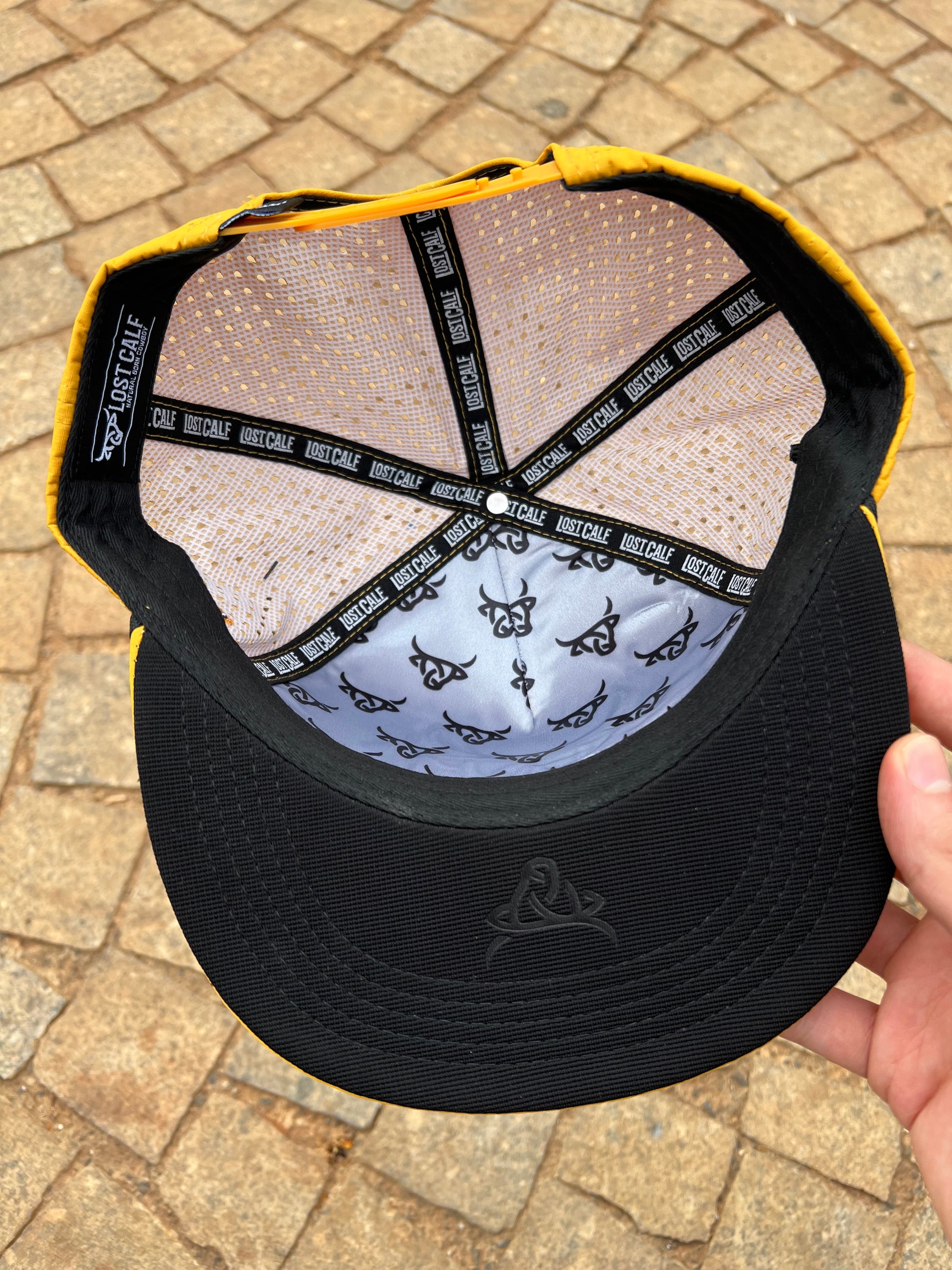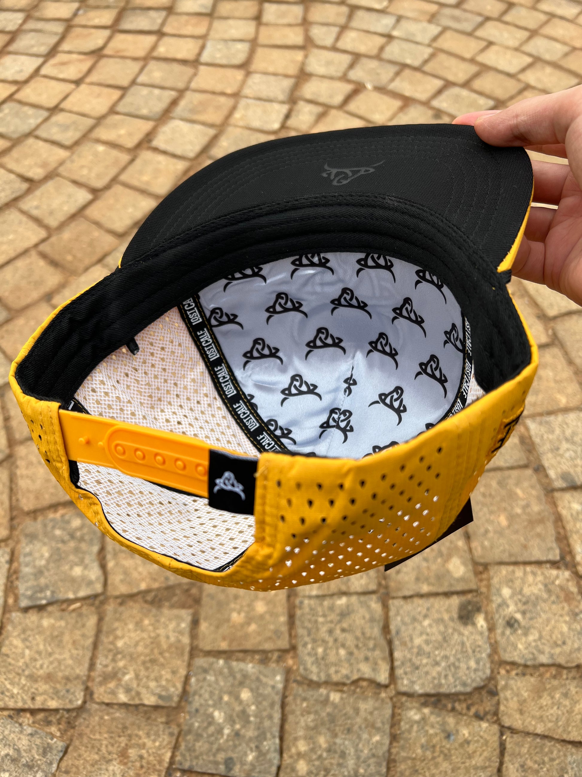 Make a bold statement with the Golden Bull Snapback Cap. Featuring a striking golden-yellow design with a raised black bull logo, this cap blends strength, confidence, and street style. The structured front panel and flat brim give it a modern, athletic look, while the breathable mesh back ensures all-day comfort. Perfect for everyday wear, outdoor adventures, or adding a fearless edge to your outfit. Adjustable snap closure for a custom fit.