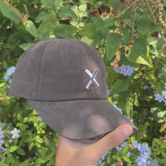 Casual dark grey baseball cap featuring a minimalist white “X” logo with the word “Golf Aparo” embroidered across the center. Made from soft, comfortable fabric, it’s perfect for everyday wear or adding a subtle sporty touch to your outfit.