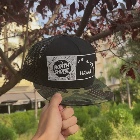 The North Shore Hawaii Trucker Cap blends island vibes with streetwear style. Featuring bold black panels with white graphic prints showcasing “North Shore” and the Hawaiian islands, this cap captures the spirit of surf culture and adventure. The camouflage flat brim adds a rugged edge, while the mesh back ensures breathability and comfort for all-day wear. Perfect for outdoor activities, travel, or casual looks, this cap brings a touch of Hawaii’s iconic lifestyle to your outfit.