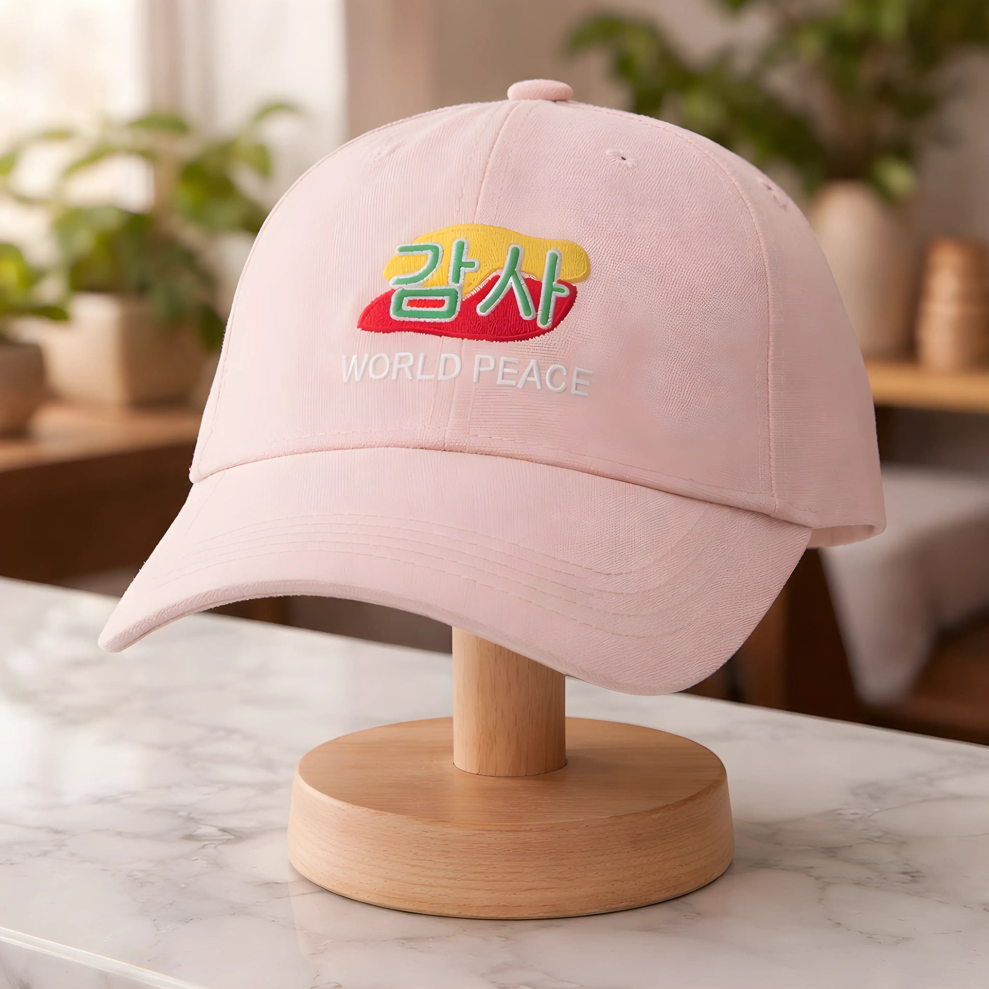 Add a soft and stylish touch to your everyday look with this pastel pink baseball cap featuring colorful embroidered lettering and the “WORLD PEACE” message on the front. Designed with a structured crown and a classic curved visor, it delivers a clean, modern vibe that pairs perfectly with casual outfits and streetwear. Lightweight and comfortable for all-day wear, this cap is great for daily use, travel, and sunny days. Adjustable back closure ensures a secure and comfortable fit for everyone.