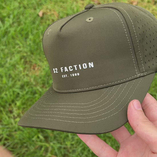 Take your look to the next level with the S2 Faction Olive Performance Cap — where sleek design meets everyday functionality. Crafted from lightweight, water-resistant fabric, this cap ensures comfort and breathability through its perforated side panels. The structured fit and curved brim offer a sharp, athletic silhouette, while the minimalist “S2 FACTION EST. 1999” print gives it a modern, street-ready edge.