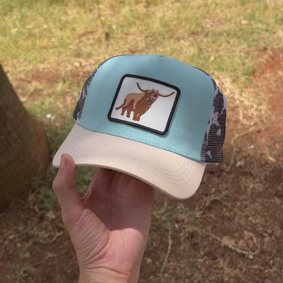 Turn heads with this eye-catching two-tone trucker hat, featuring a striking embroidered bull patch on the front. Designed with a soft beige brim, sky blue crown, and breathable mesh back, it’s perfect for sunny days and casual vibes. Adjustable snapback closure ensures a perfect fit for all-day comfort. Whether you're out for adventure or just chilling, this cap brings rugged charm and streetwear flair to any outfit.