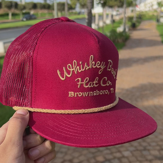 “Whiskey Bent Trucker Cap – Maroon Edition”