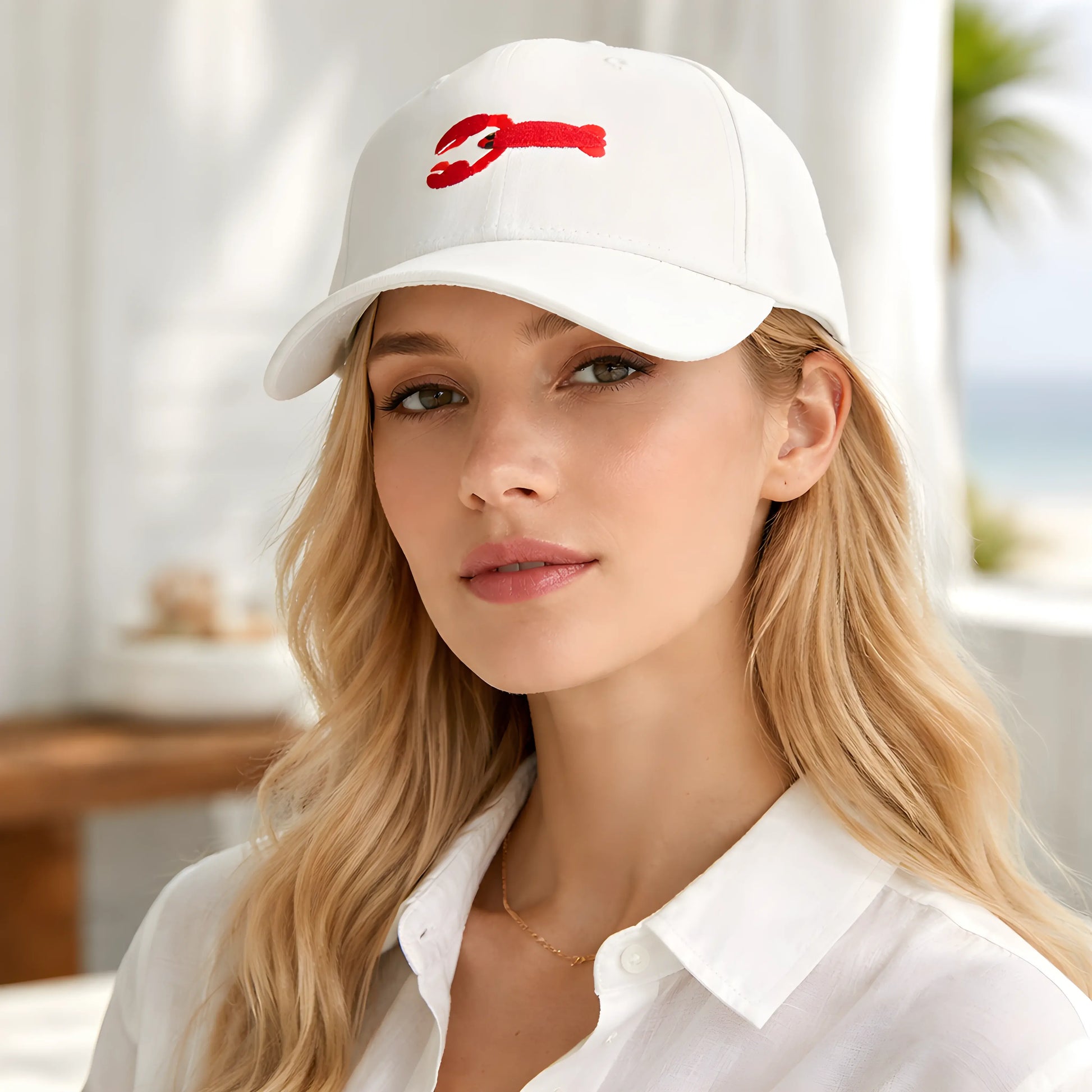 Add a clean and fresh touch to your outfit with this white baseball cap featuring a bold red embroidered crab logo on the front. Designed with a structured crown and curved visor, it offers a modern sporty look that works perfectly with casual and summer outfits. Lightweight and comfortable for all-day wear, this cap is ideal for daily use, outdoor activities, and streetwear styling. Adjustable back closure ensures a secure and comfortable fit for everyone.
